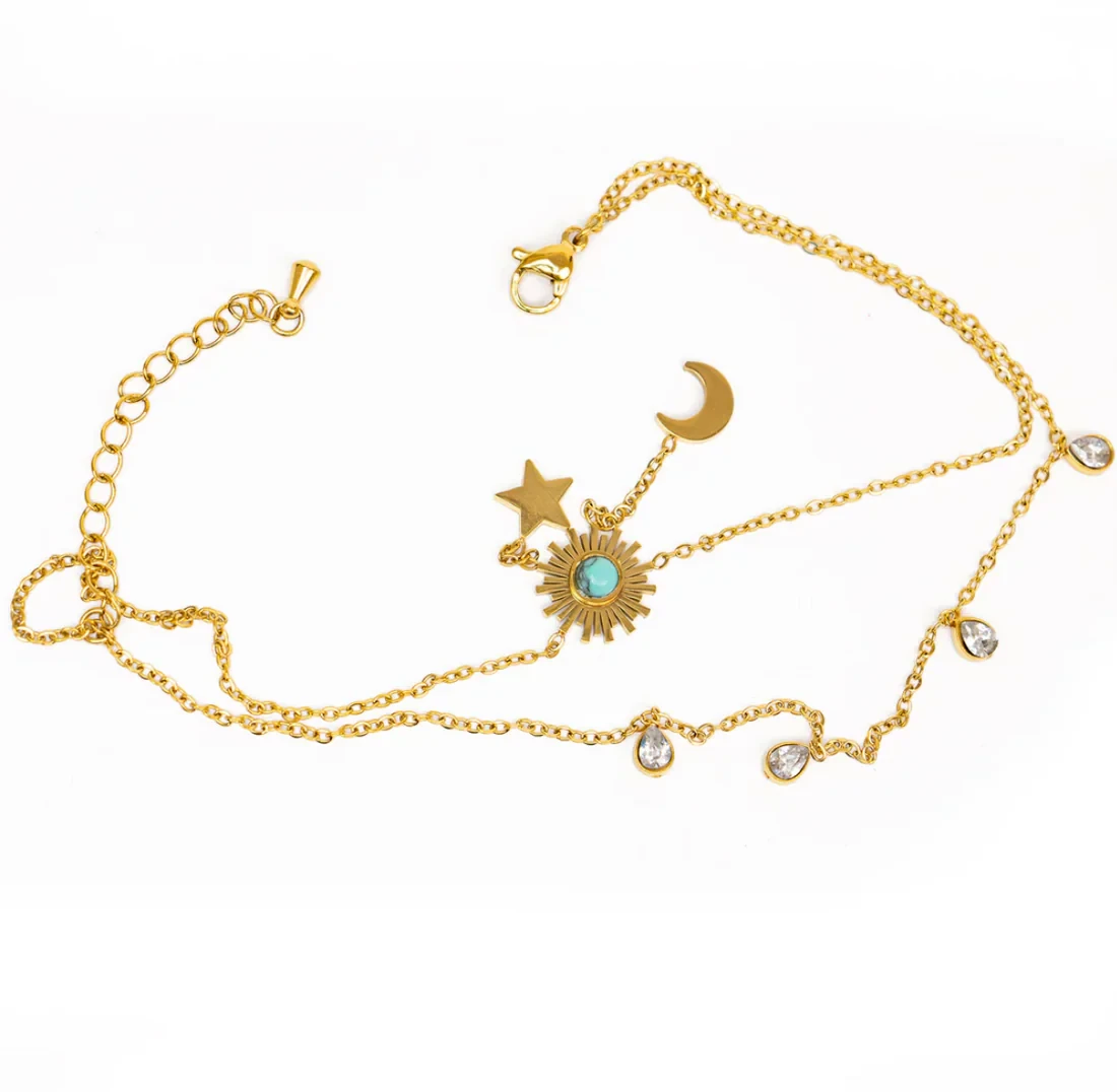 This Summer Vybe Ankle Bracelet is a celestial symphony harmonizing the elements of the cosmos. The starry charms, iridescent beads, and cosmic hues unite in a spiral dance around your wrist, connecting you to the universe's mysteries and the magic of celestial bodies.