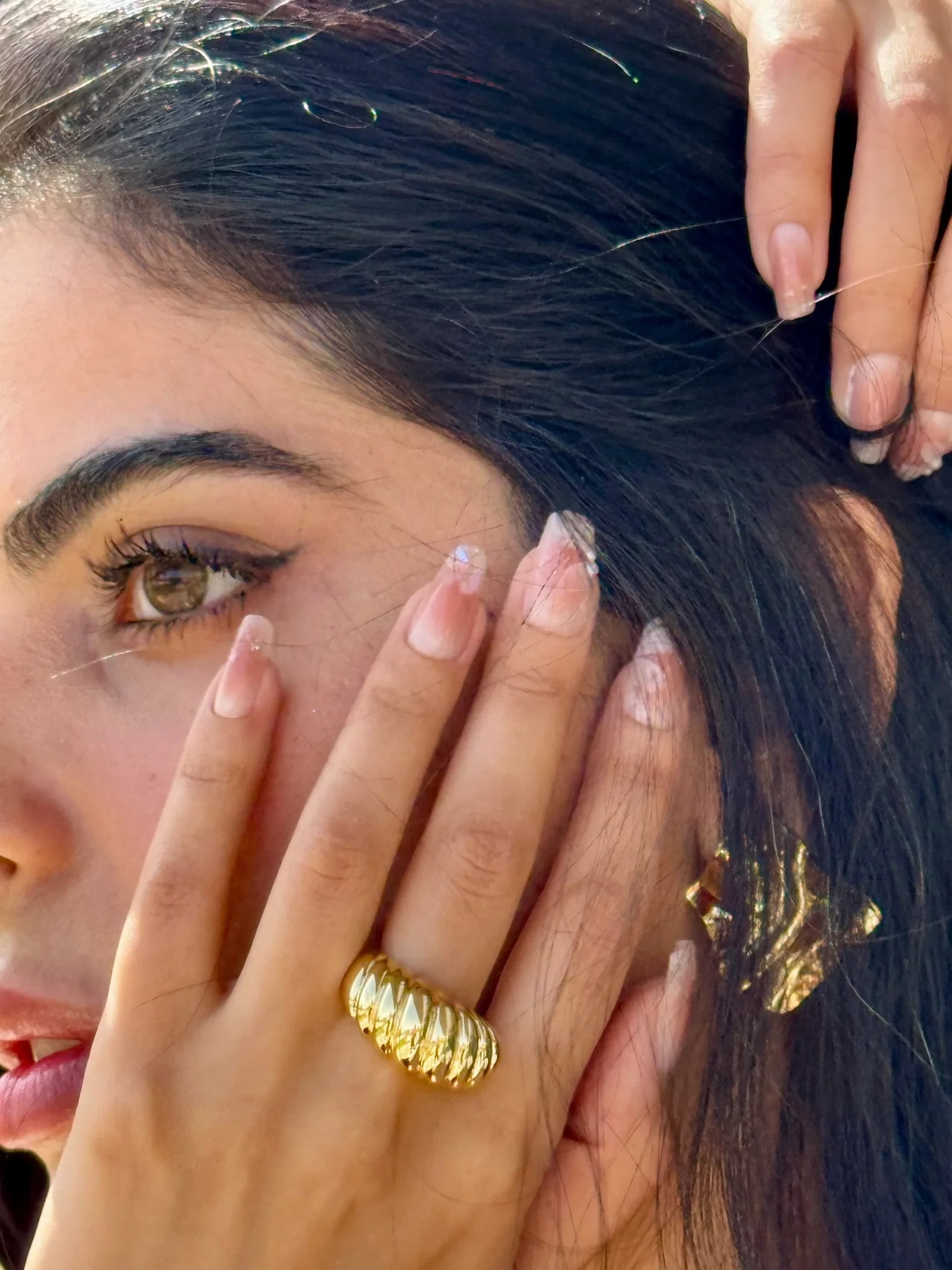 Step into the spotlight with Nousha's Gold Ring. This bold and alluring chunky gold ring is a celebration of opulence, designed to capture attention and emanate brilliance with every movement.